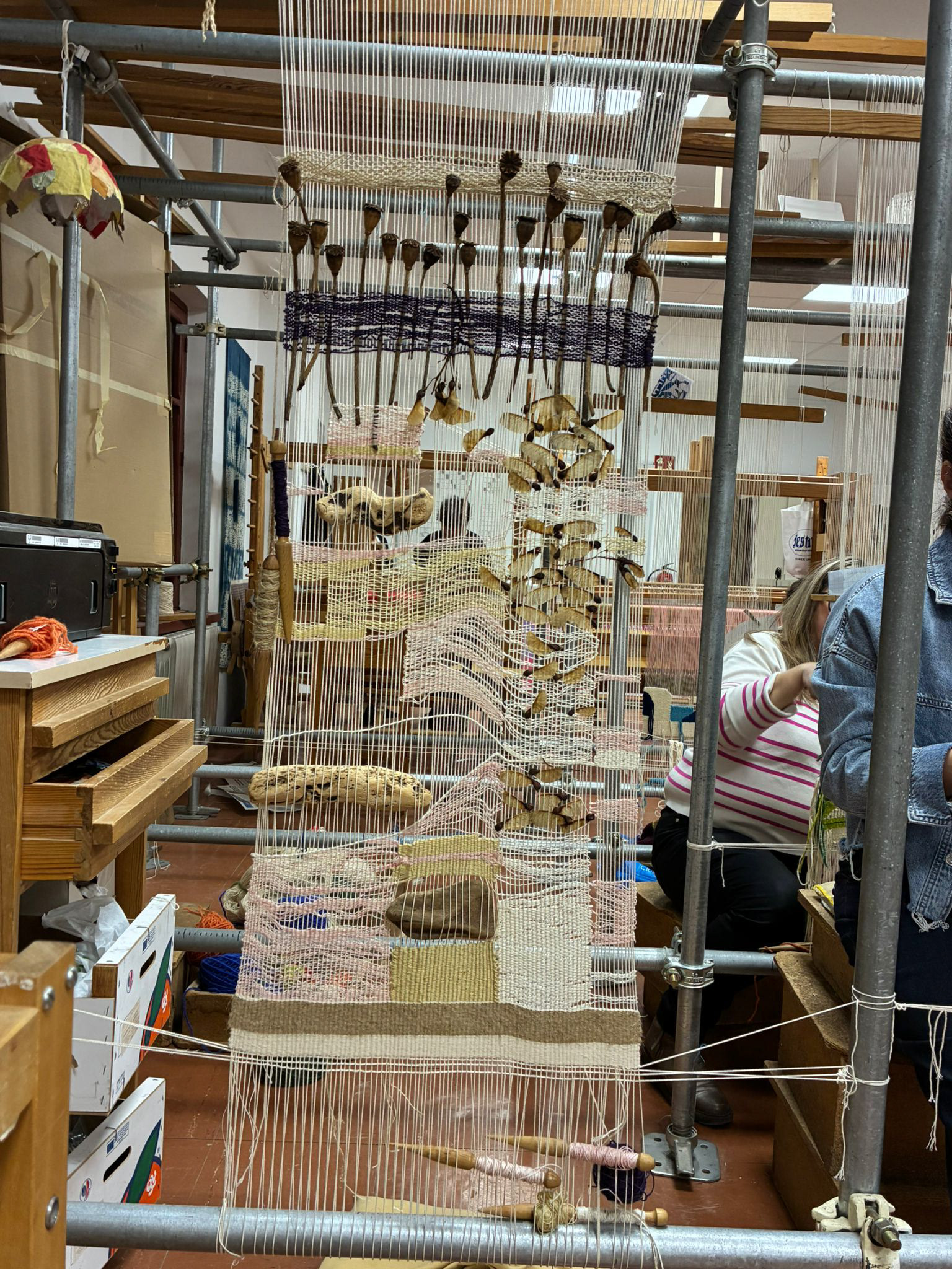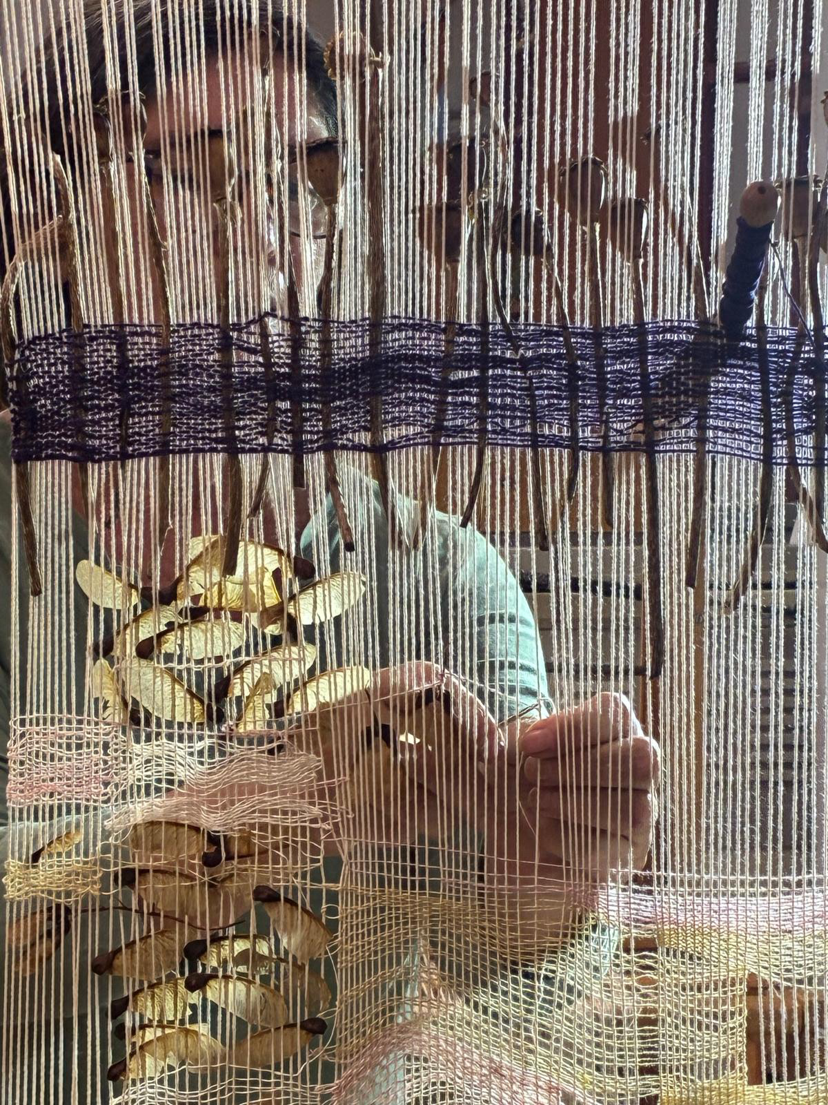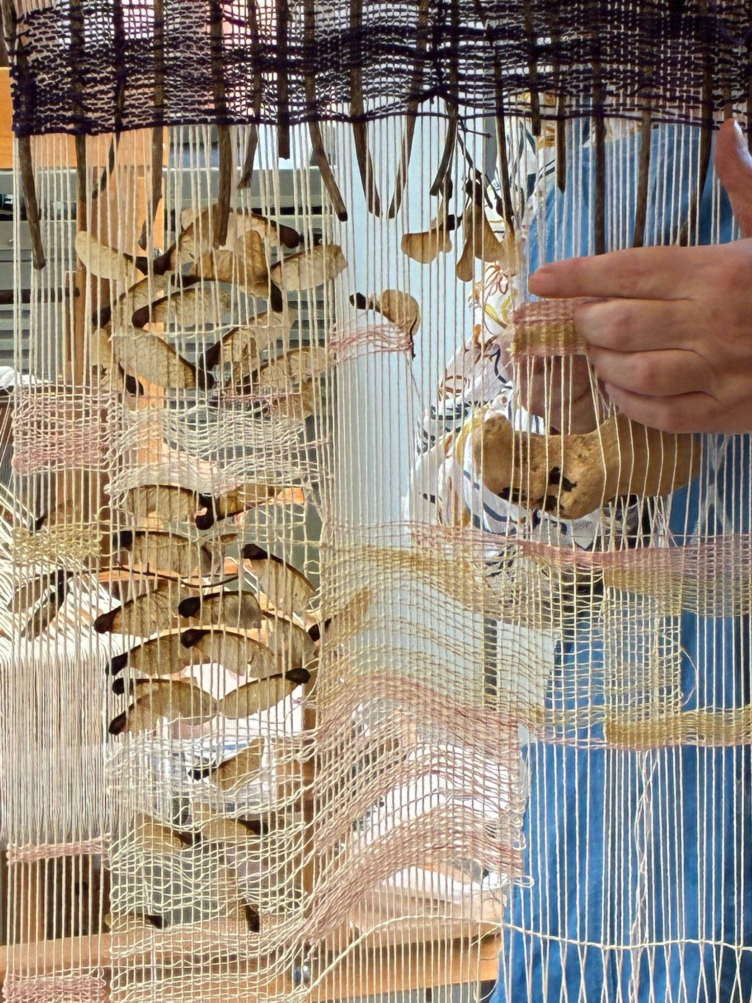 Organic elements: Samara seeds, dried stems of giant poppy, sea-eroded woods. Woven on high-warp loom